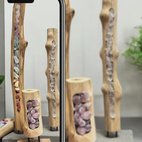 Unsere Kristall-Holzsäulen sind nicht nur eine wunderschöne Dekoration, sondern auch eine wertvolle Unterstützung in jedem Raum, wo Energien gereinigt werden sollen.