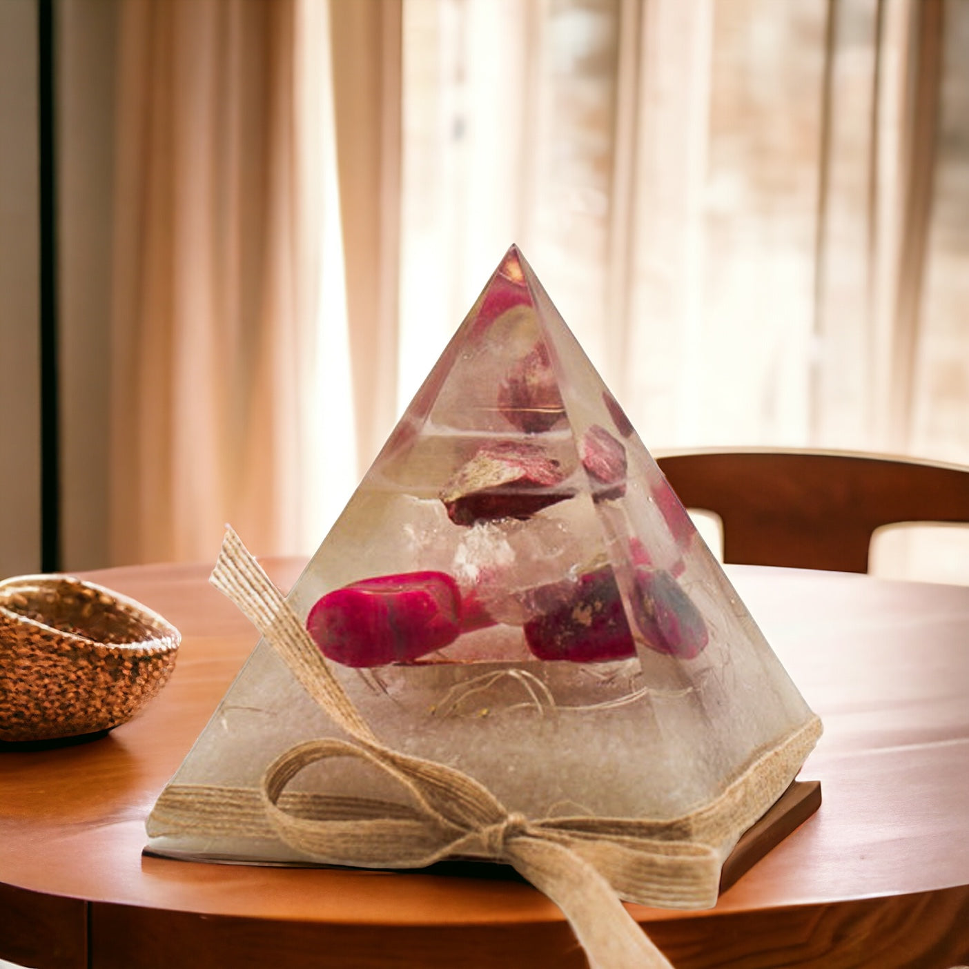 Platzieren Sie die Orgonitpyramide "Herz-Energie" in Ihrem Wohn- oder Arbeitsbereich, um von ihrer transformierenden Kraft zu profitieren. Diese Pyramide ist nicht nur ein ästhetisches Kunstwerk, sondern auch ein wertvolles Instrument zur Förderung von Wohlbefinden und innerer Ausgeglichenheit.