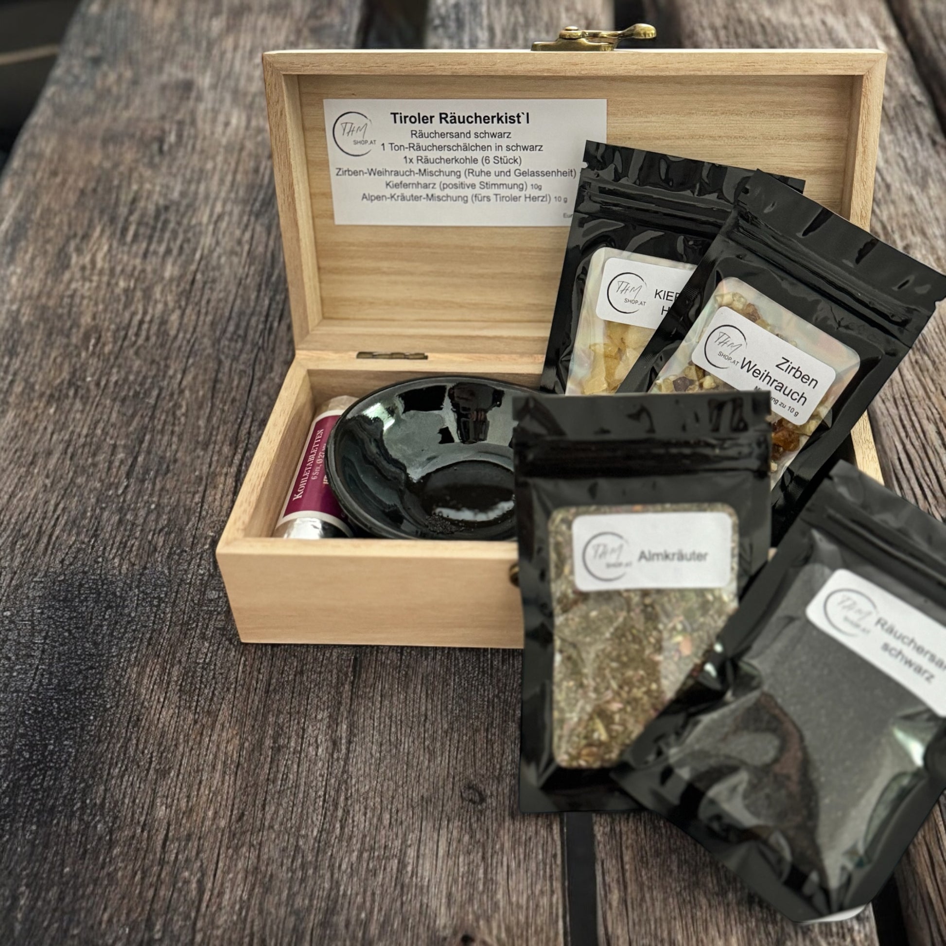 unser Tiroler Räucherkisterl selbst graviert ist gefüllt mit